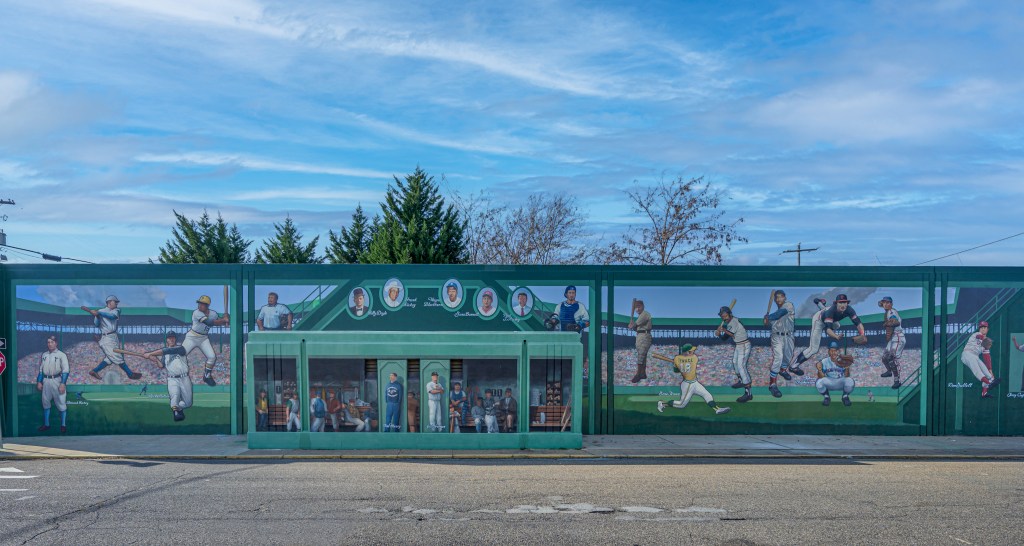 Pictured on the mural are some of the greatest people who ever played, scouted, and umpired Major League Baseball – all from this area.